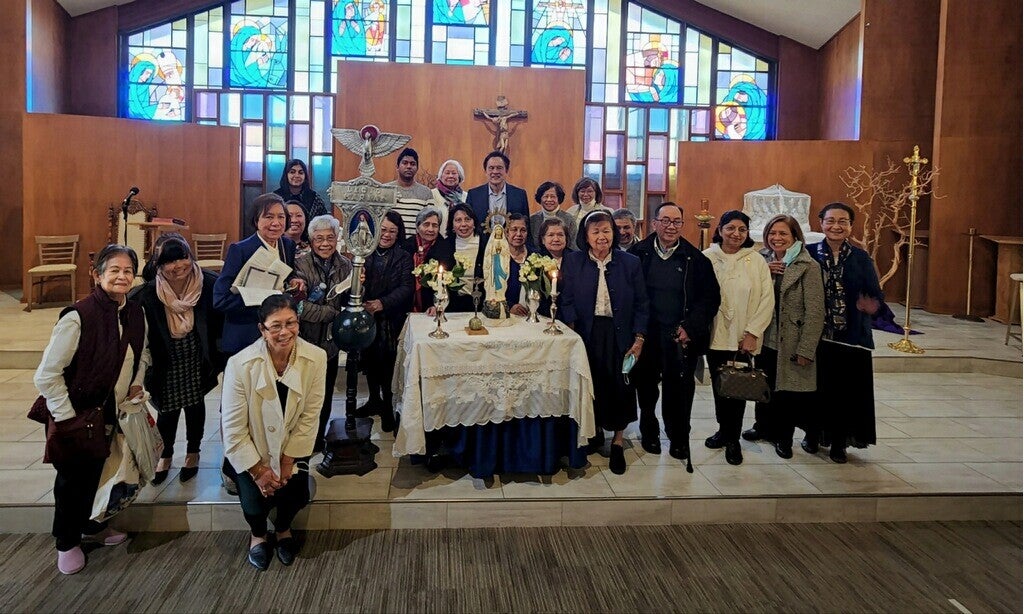 Officers of the San Mateo County Comitium (from l-r): Sis. Julie Tabajonda (VP), Bro. Gil Mateo (Treasurer) and Sis. Lorna Garcia (President). Not in picture: Sis. Ivy Mecano (Secretary) and Fr. Cameron Pollette (Spiritual Director)